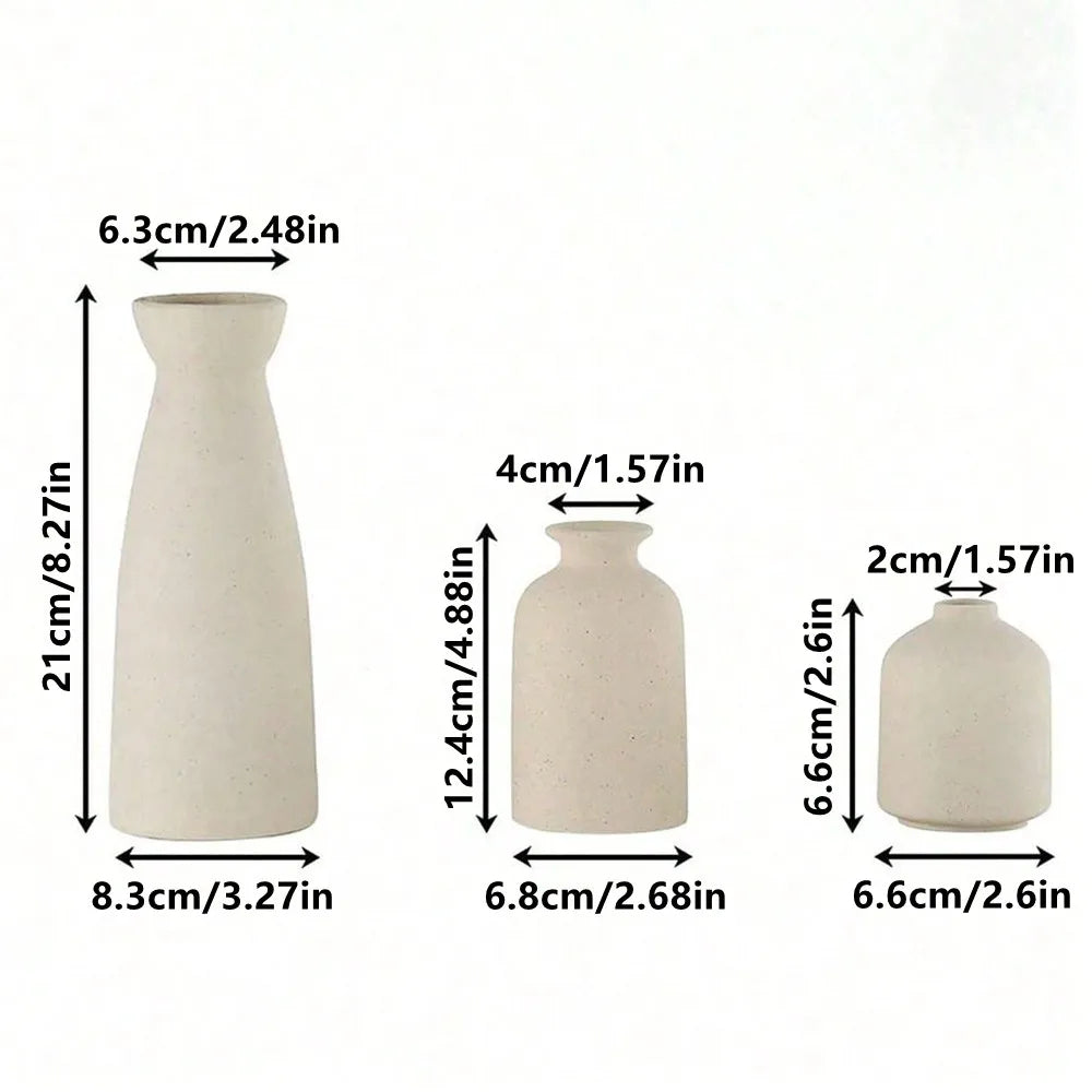 The soft, irregular shapes and subtle textures give this set of 3 ceramic vases a handmade, rustic charm that's hard to find in more uniform options. It's a thoughtful mix of bohemian and modern farmhouse elements, making it versatile for everything from casual shelves to dining table setups.