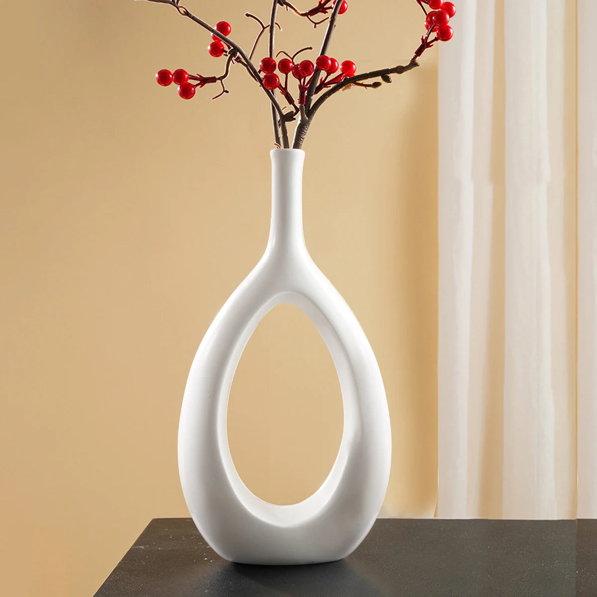Modern White Donut Vase - Resin Boho Minimalist Decor, Various Sizes
